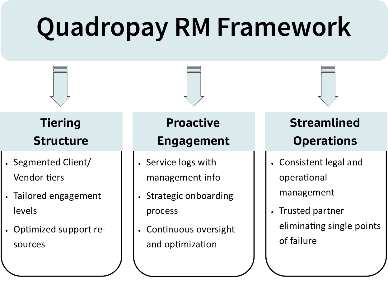At Quadropay we believe that success is built on strong relationships. That's why our Relationship Management (RM) Framework is designed to maximize value, foster strategic partnerships and ensure exceptional service both for clients and vendors
